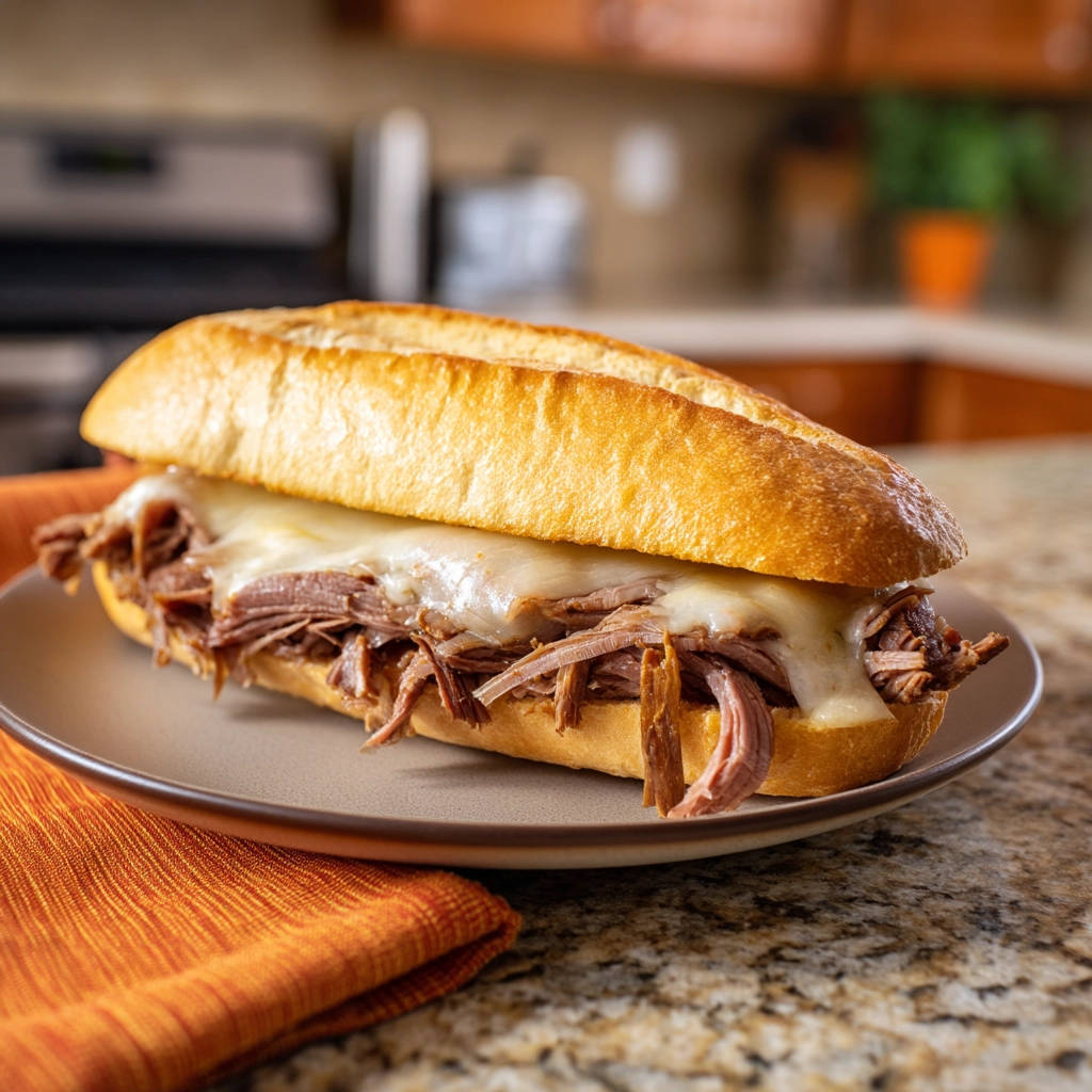 Gather your ingredients, set aside the time for the slow cooking magic, and get ready to enjoy one of the most satisfying sandwiches you’ll ever make. Serve it up hot, cheese melted and bubbly, with plenty of those delicious juices ready for dipping. It’s pure comfort in a bun.